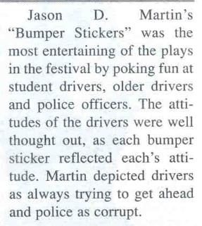Bumper Stickers The Following is an excerpt from a review by The University of Nevada, Las Vegas' Student Newspaper, The Rebel Yell April 9, 2001